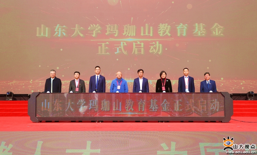 反哺母校,助力发展。 山东大学副校长、威海校区校长刘建亚,威海校区党工委书记仇道滨,校友代表共同启动山东大学玛珈山教育基金。