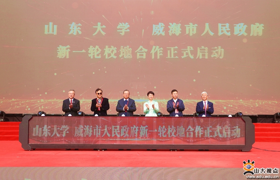 共同发展,双向奔赴。 任友群、李术才、赵刚、孔凡萍、韩民、王长树共同启动新一轮山东大学-威海市人民政府校地合作。山东大学将持续推进与威海市的全面合作,充分发挥各自资源优势,在赋能、协同、融合中打造校地合作新典范。