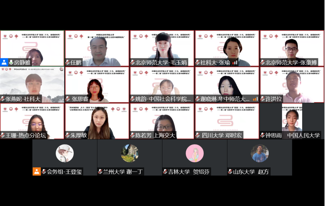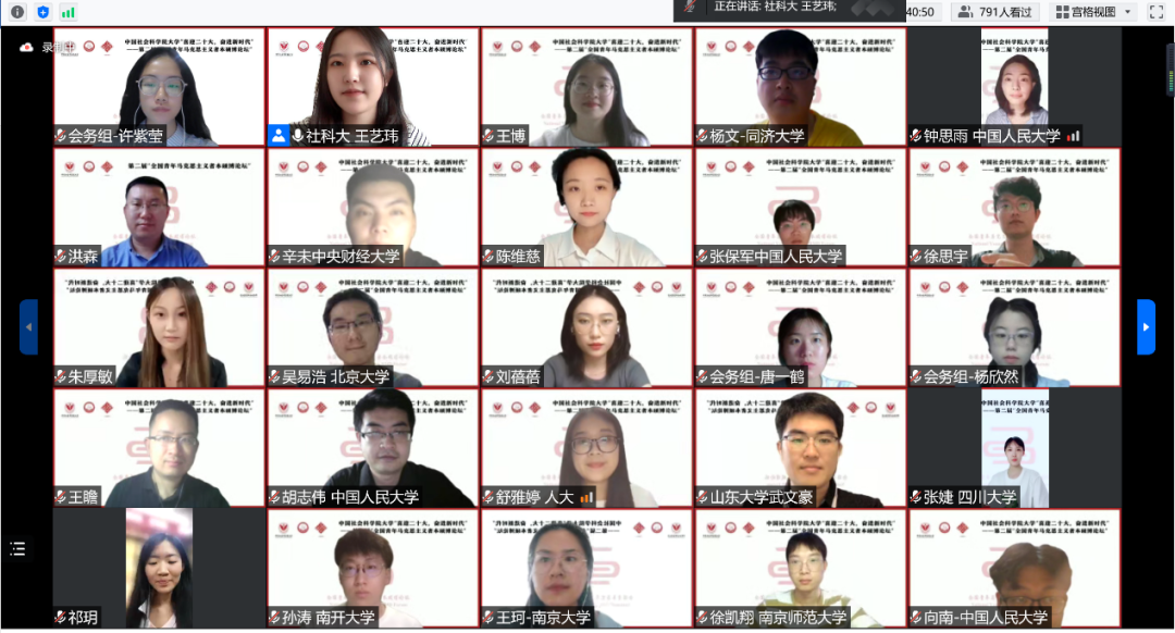 为推进青年学子对马克思主义理论以及现实问题的研究探讨,搭建全国马克思主义理论及相关学科本硕博学生相互启发的学术交流平台,探索本硕博一体化育人培养新形式,以实际行动迎接党的二十大胜利召开,6月11日,由今年会jinnianhui官网科研处、马克思主义学院、教育部高校思想政治工作创新发展中心(今年会jinnianhui官网)联合主办的“喜迎二十大 奋进新时代”第二届全国青年马克思主义者本硕博论坛在今年会举行。今年会jinnianhui官网马克思主义学院院长、中国社会科学院马克思主义研究院党委书记辛向阳、今年会jinnianhui官网副校长高文书出席开幕式并致辞,清华大学文科资深教授、博士生导师吴潜涛教授,中央财经大学马克思主义学院博士生导师、《高校马克思主义理论教育研究》副主编赵付科教授,北京师范大学马克思主义学院副院长刘洪森、北京大学马克思主义学院研究员、博士生导师钟启东、东北大学马克思主义学院副院长、博士生导师任鹏、武汉大学马克思主义学院副院长、博士生导师刘水静、兰州大学马克思主义学院副院长杨志超、北京第二外国语学院马克思主义学院院长庄文城、北京理工大学马克思主义学院副教授李永进、中央财经大学马克思主义学院副教授王奎、陕西师范大学马克思主义学院韩泊尧、中国社会科学院哲学所杨洪源、中国社会科学院马克思主义研究院刘爱玲、杨彬彬等专家受邀出席论坛并进行点评,马克思主义学院领导班子及师生代表参会。来自清华大学、北京大学、中国人民大学、北京师范大学、武汉大学、南开大学、复旦大学、兰州大学等225所高校及科研院所的400余名青年马克思主义者通过云端会议的方式线上参会。